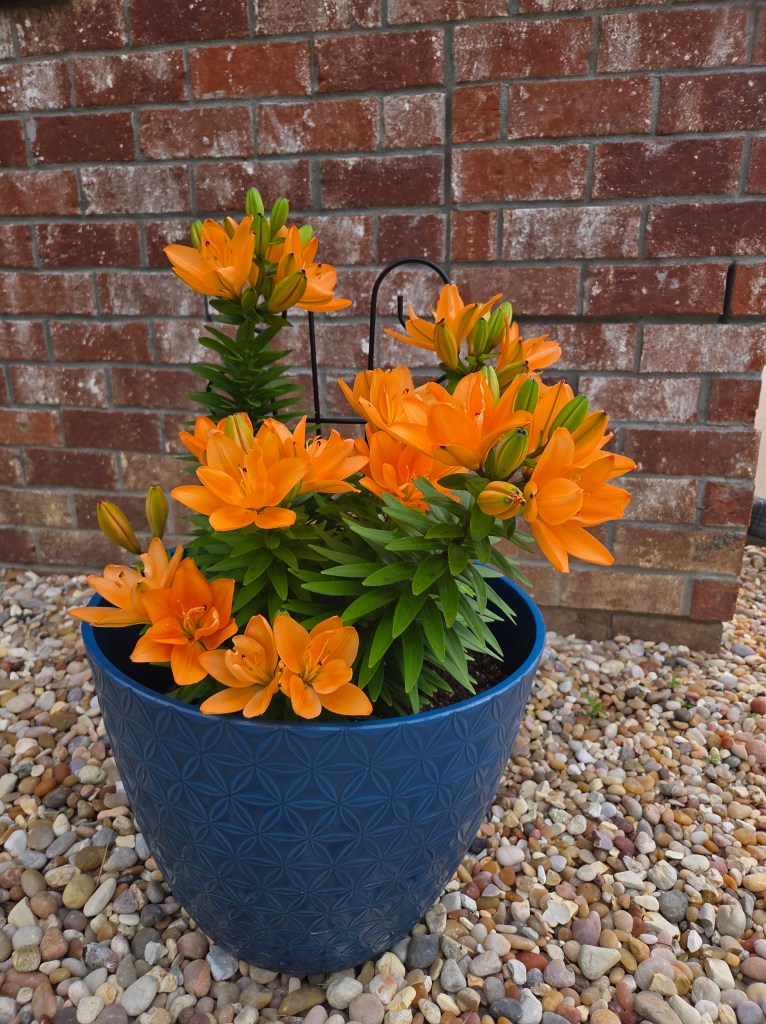 I love this time of year when the flowers start to bloom. I like a variety of flowers, but my current favorite is lilies. I revamped my front flower garden and added a Peruvian lily (purple). The orange lily I planted last year is full of blooms.